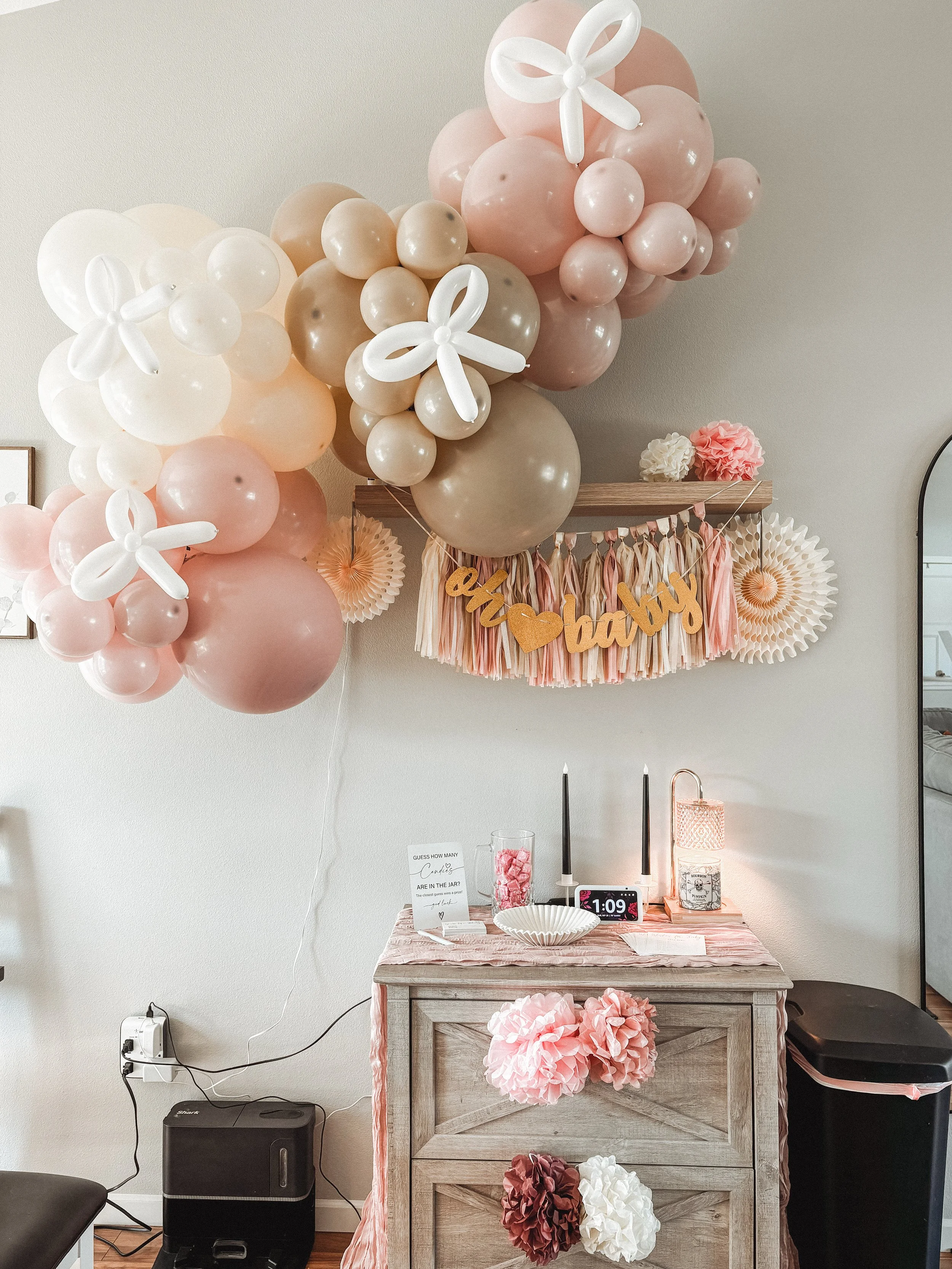 Cavern Pink, Beige & Tan 6ft Garland with Balloon Bow add ons.